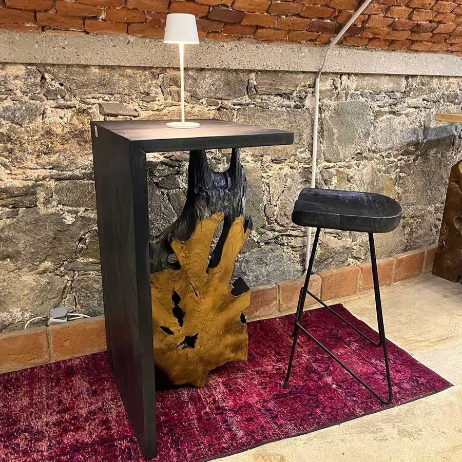 • Barový stůl z tropického kořenového dřeva Sentana je uzpůsoben tak, aby mohl i ležet a fungovat jako stůl konferenční. Stůl je postaven ze dvou desek ve tvaru písmena L, uprostřed desek je potom masívní dekorativní podpěrná deska z kořenového dřeva. Nádherný kus. Barový stůl je vhodné doplnit stylovými barovými sedátky z naší nabídky. Stolek je k dispozici v přírodní i černé variantě.
