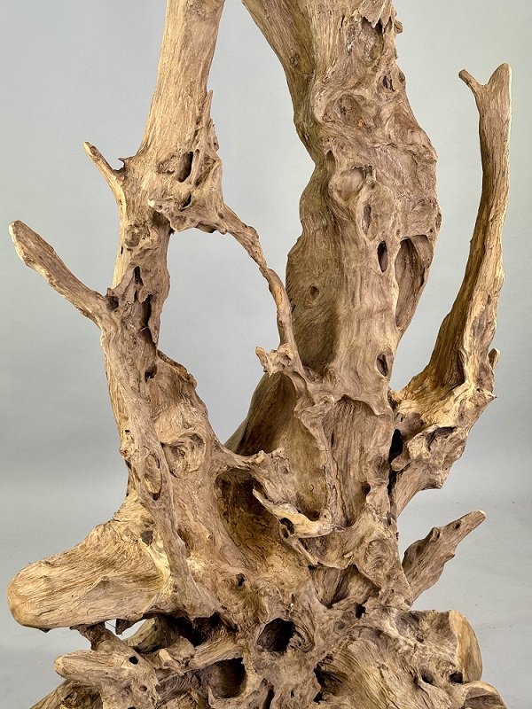 Teakové kořenové dřevo je mimořádně pevné a odolné vůči vlhkosti i škůdcům, což z něj dělá ideální materiál pro vnitřní i venkovní nábytek a dekorace. Díky vysokému obsahu přírodních olejů odolává povětrnostním podmínkám i bez speciální údržby.