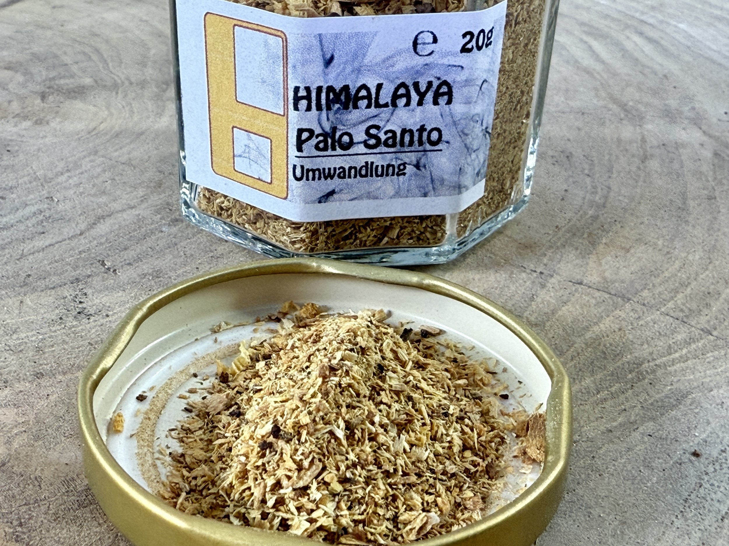 Tato originální směs nesoucí název Himalaya Palo Santo – Umwandlung (v překladu „proměna“) byla vytvořena pro všechny, kdo touží po vnitřním zklidnění, energetické očistě a harmonii. Nejedná se o klasické jihoamerické Palo Santo, ale o jemně vonící směs dřevitých a bylinkových tónů, které připomínají jeho spirituální účinek – očistu, klid a nové začátky.