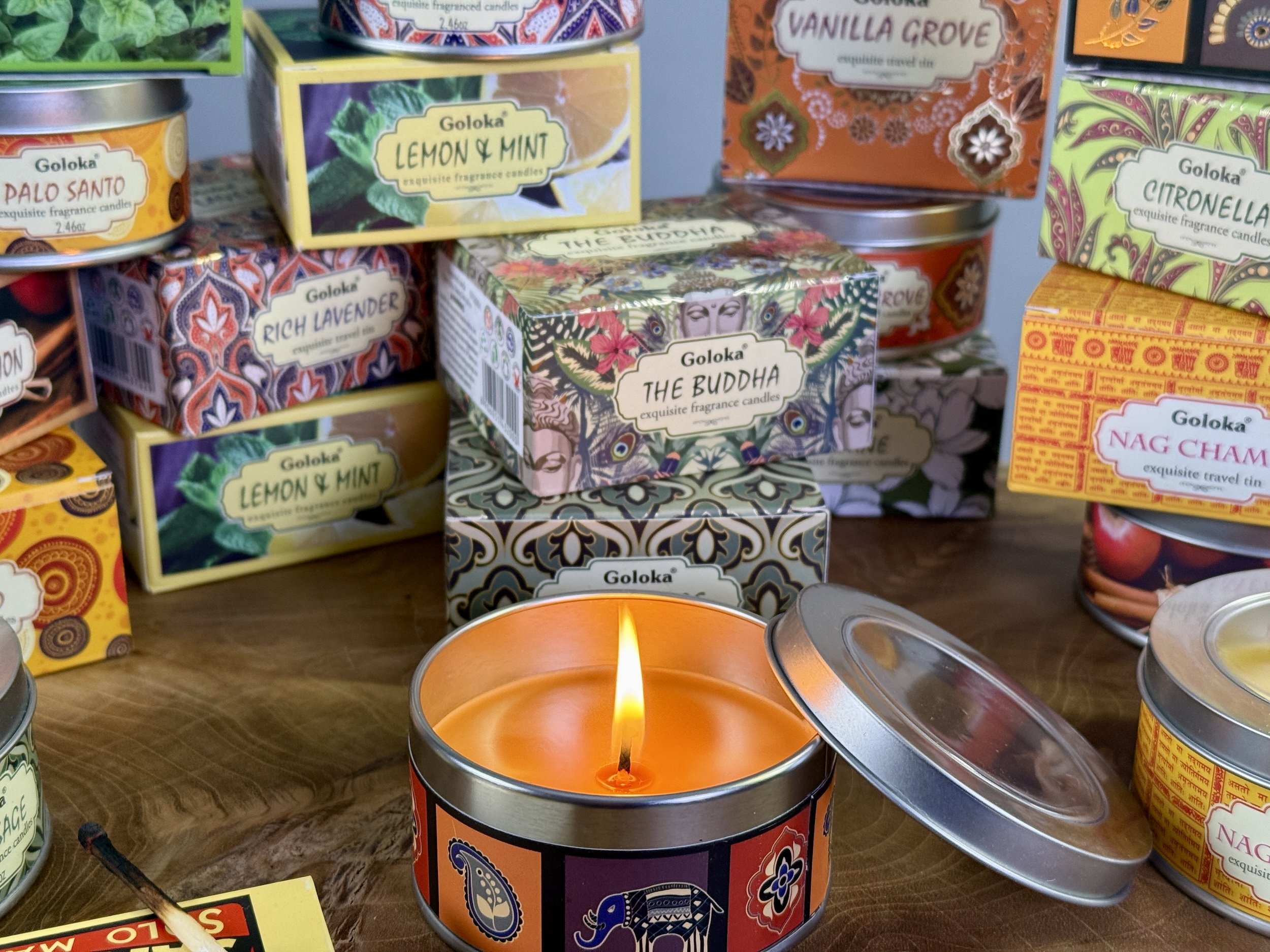 Luxusní balení v plechovce s průhledným víčkem ve které svíčka přímo hoří. Vnějším balením je okrasný kartonek.