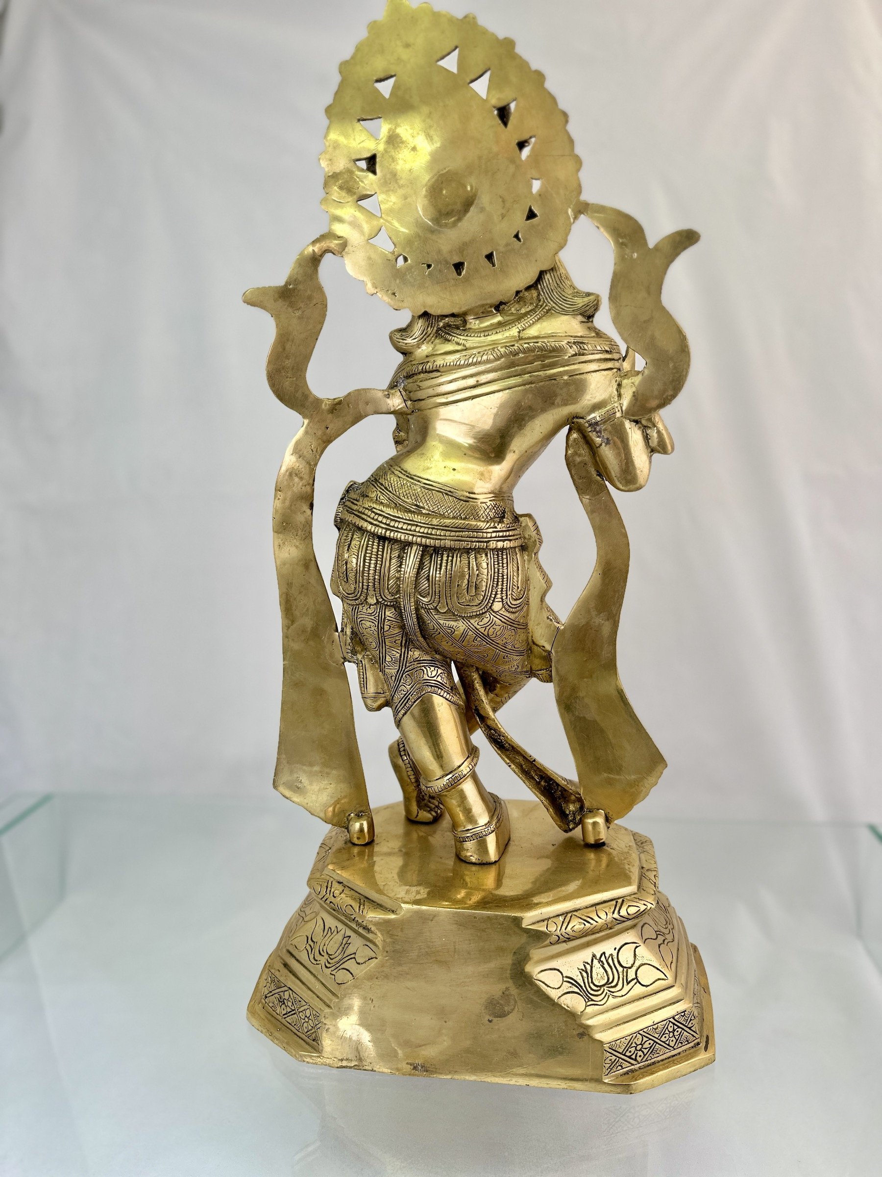 Vysoká a detailně propracovaná, 13 kg těžká socha božstva Krišny. Krišna je v hinduismu snad nejznámější a nejvíce uctívané samostatné božstvo nebo jako 8 reinkarnace, avatar boha Višnua. Nejvíce se o něm lze dočíst v Mahábharátě - )část Mahábharáty BhagavadGíta je rozhovorem Krišny s Ardžunou) a v Puránách. Pokud budete shánět BhagavatGítu, doporučuji věcně správný překlad Janíčka z roku 1989, čas od času se objevuje v on-line antikvariátech.