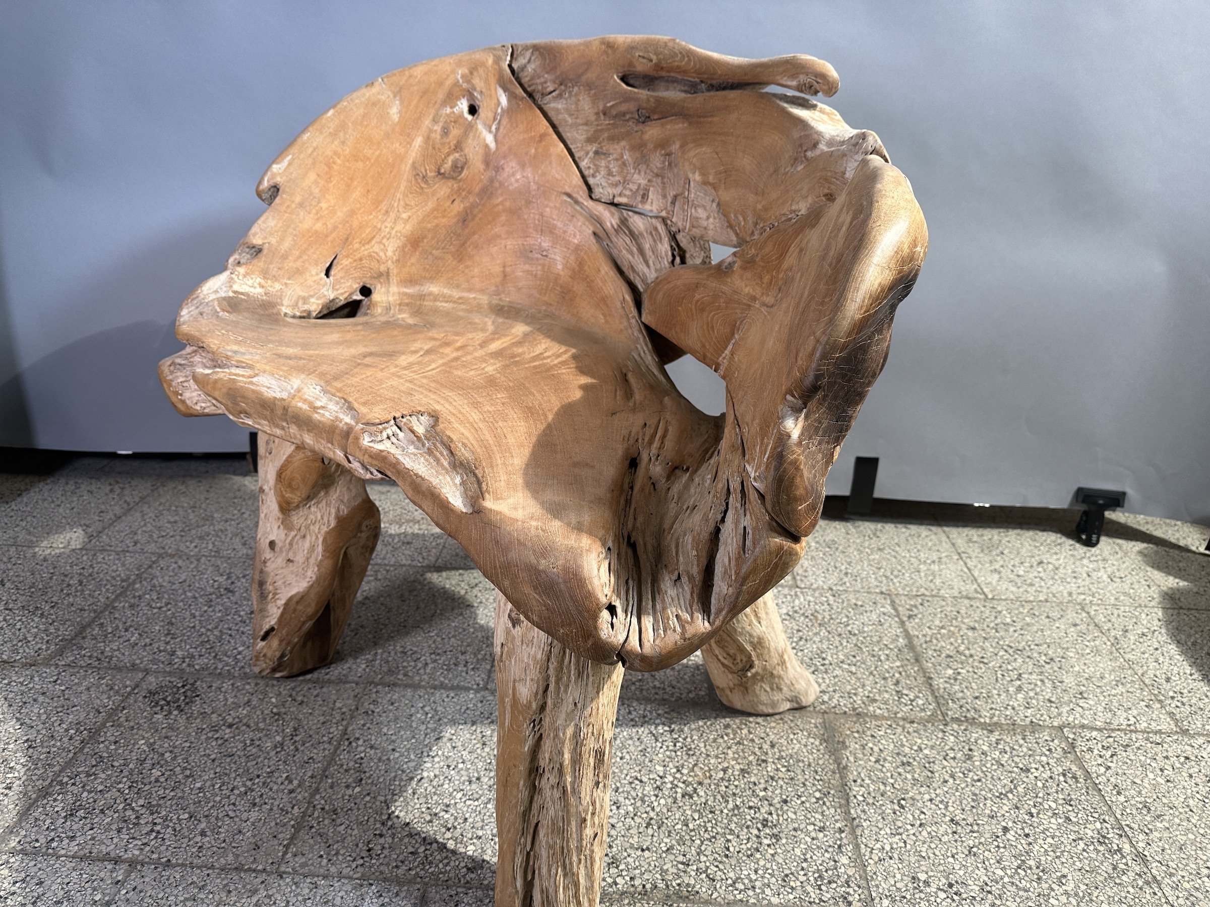 Lavice z teakového kořenového dřeva ve tvaru křesla s vyšším opěradlem naž mají lavice Lombok. Vhodné pro jednu osobu. Tato "křesla" jsou také mnohem pohodlnější něž běžné lavice Lombok. Mohu jen doporučit jak pro užitnou, tak pro dekorativní hodnotu.