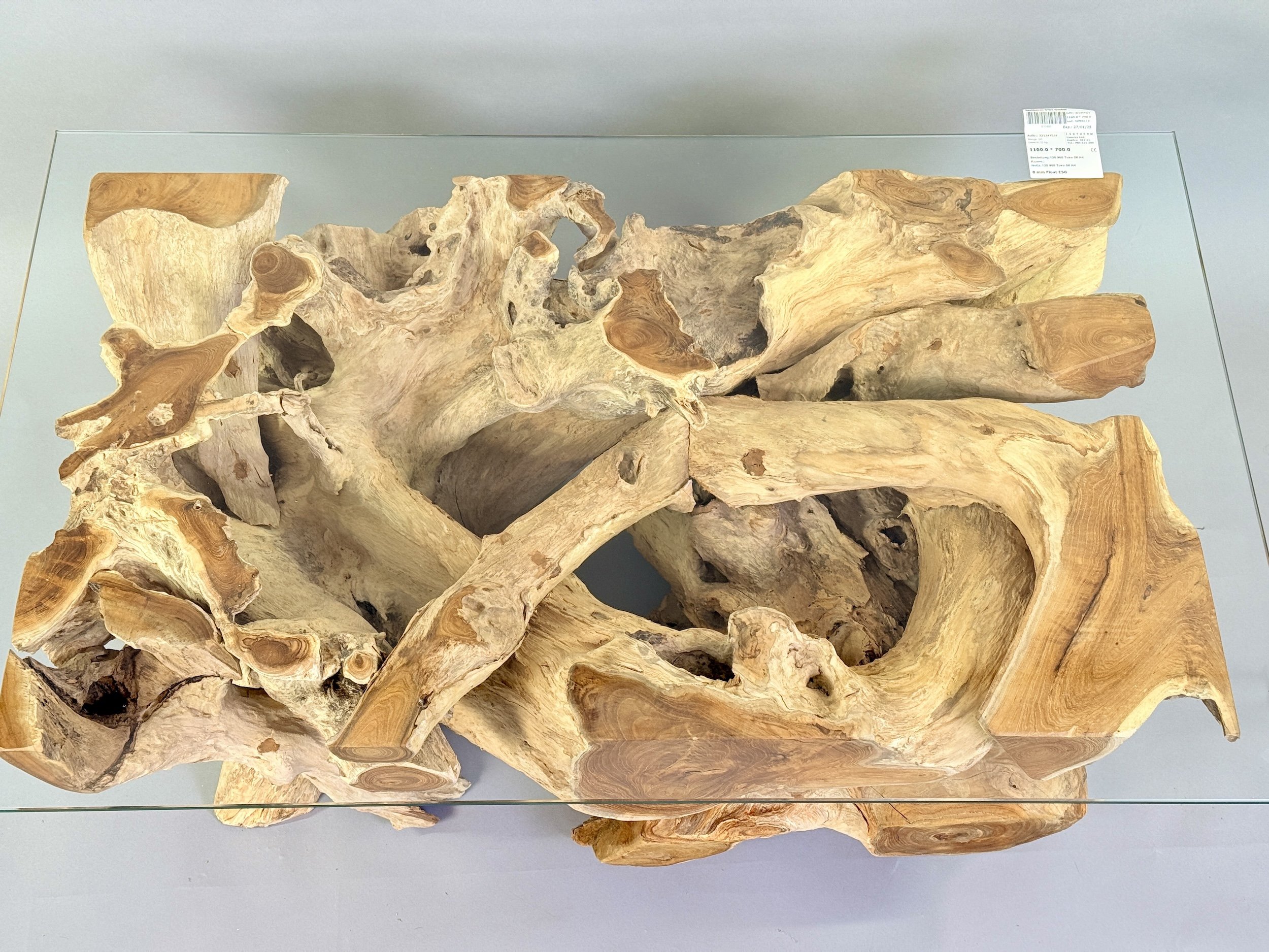 Tento unikátní stolek vznikl z autentického kořenového systému indonéského teakovníku, konkrétně z oblasti Jávy. Každý kus je originálem – žádné dva stoly nejsou stejné díky nepravidelnému a působivému průřezu kořenového dřeva. Tvrzená skleněná deska elegantně uzavírá divoký charakter dřevěného podstavce a vytváří vyvážený kontrast mezi syrovou přírodou a čistou modernou.