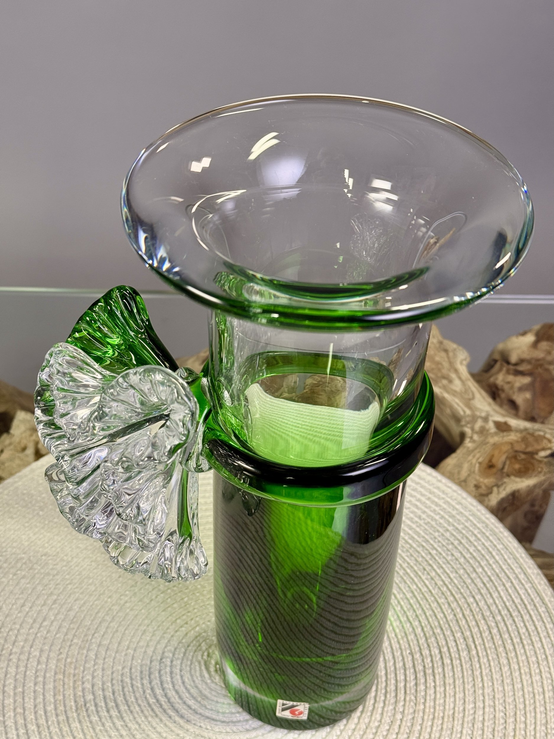 Ručně hutně tvarovaná váza z čirého a zeleného skla