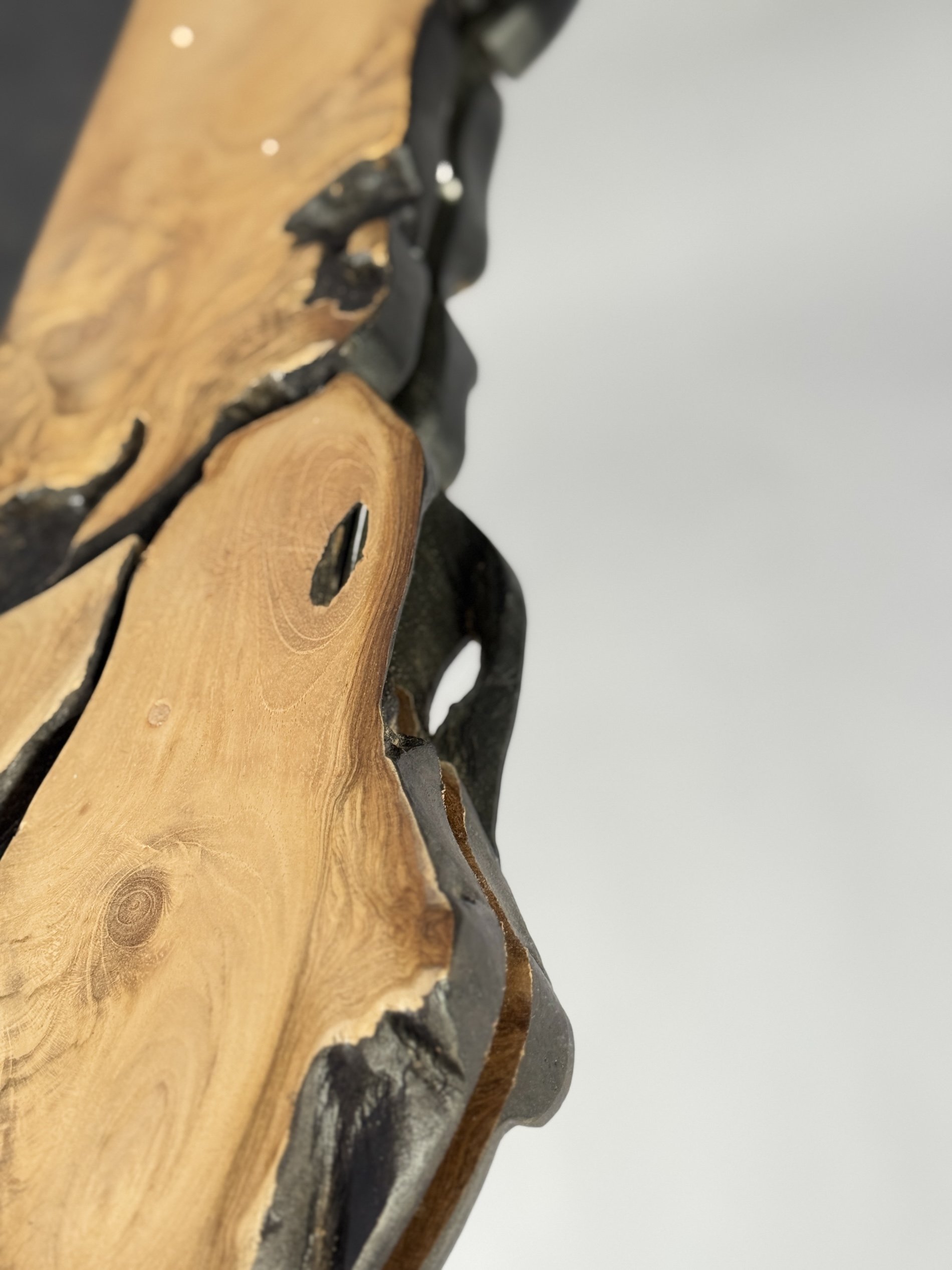 Díky organickému tvarování, přirozeným prasklinám, sukům a syté struktuře dřeva působí rám jako přírodní socha. Černě probarvené spáry mezi segmenty dřeva záměrně podtrhují kontrast mezi surovostí a elegancí. Zrcadlo skvěle zapadne do moderních, rustikálních, industriálních i boho interiérů.